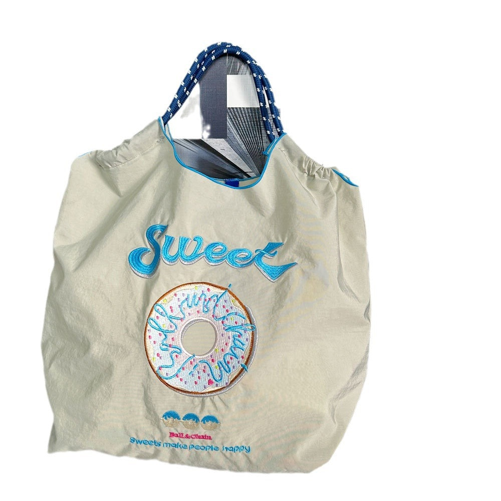 Donut Embroidery Shopping Large Capacity Nylon Handbags