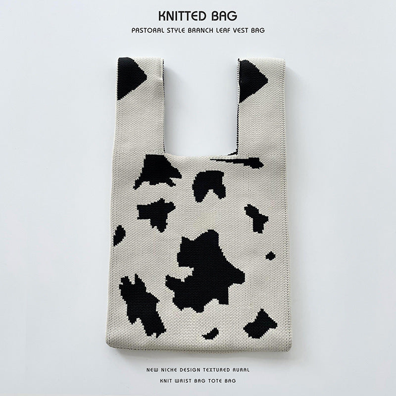 Female Design Heart Color Matching Knitted Handbags