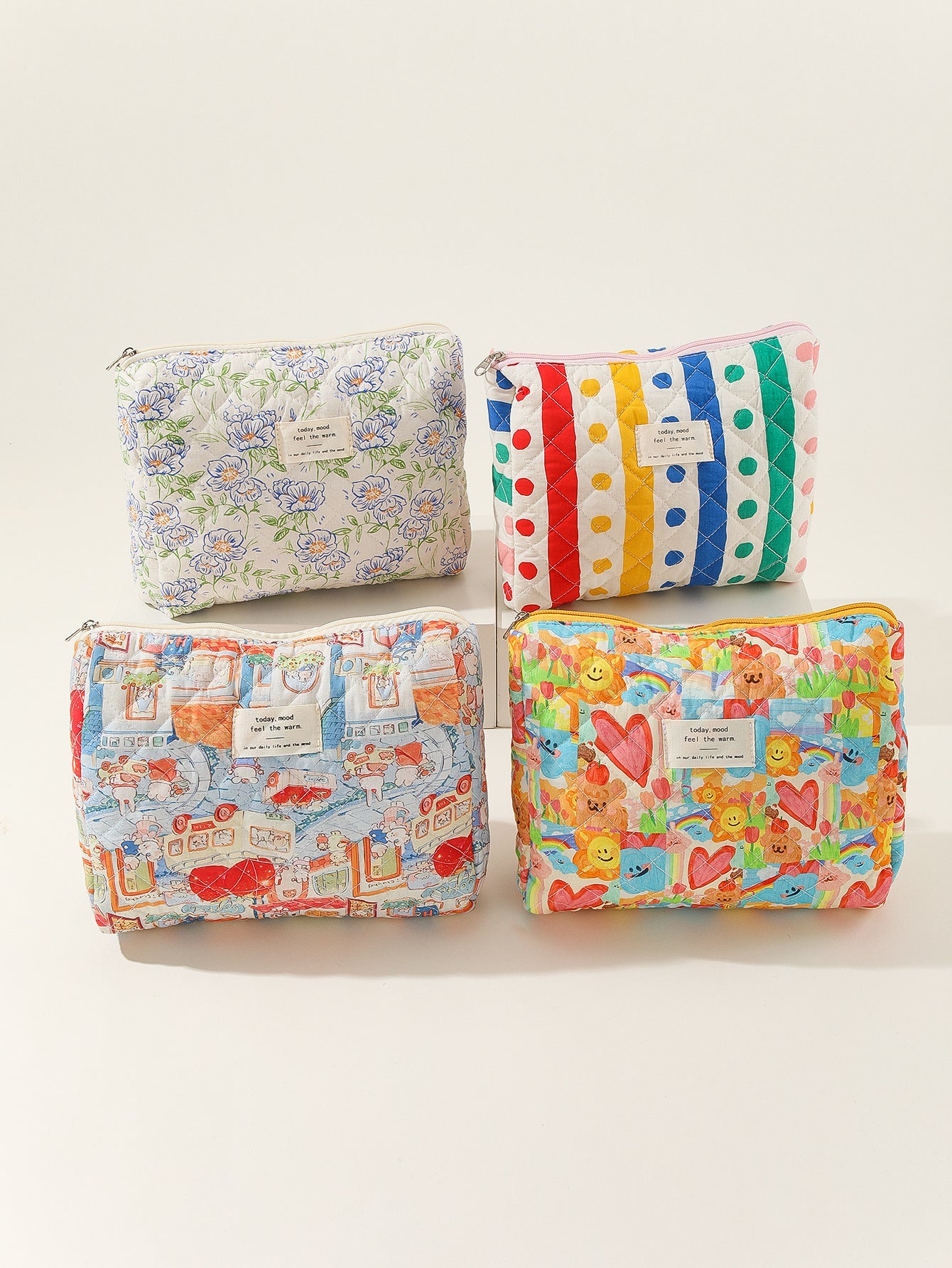 Large Capacity Liner Striped Polka Dot Storage Carrying Quilted Cosmetic Bags