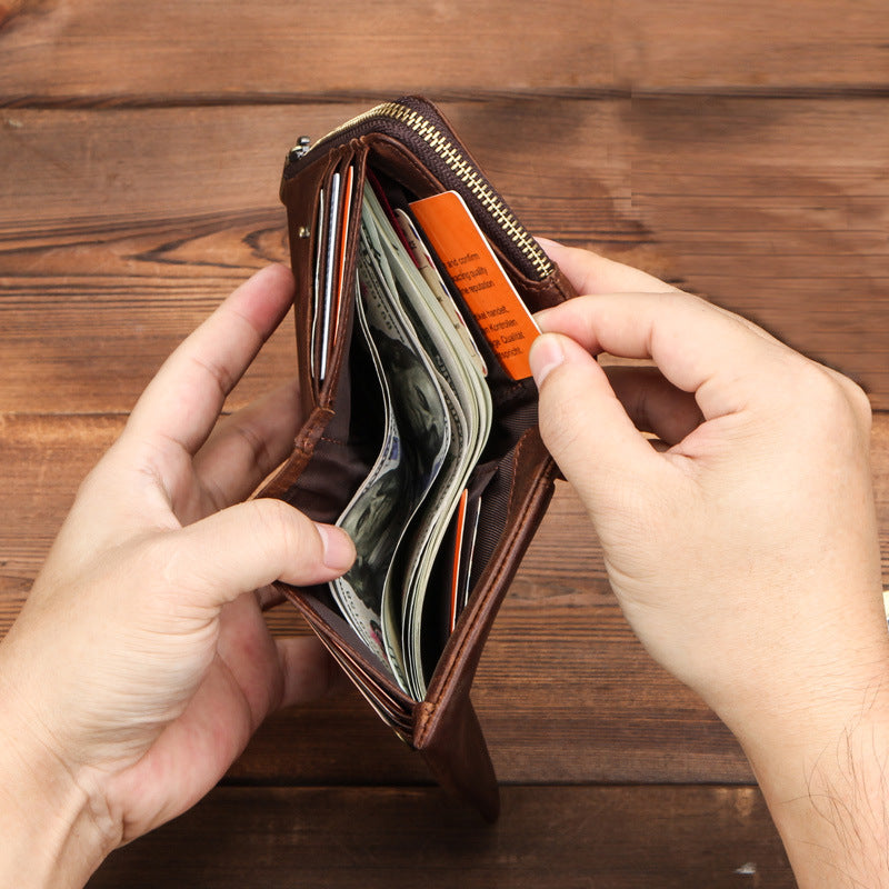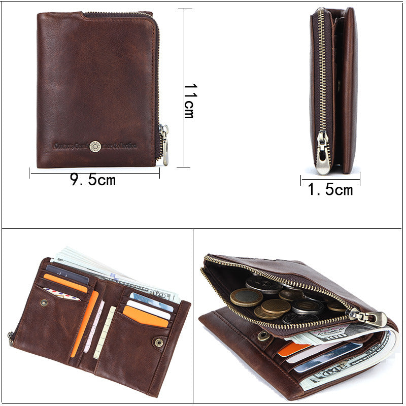 Men's Black Angel Swiping First Layer Cowhide Men's Wallets