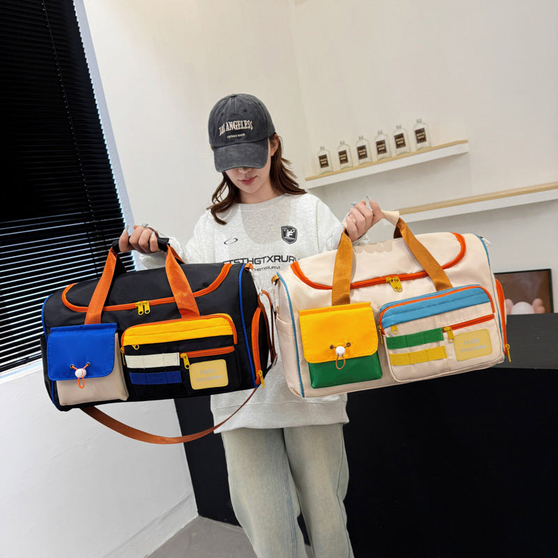 Versatile Contrast Color Fashion Portable Large Travel Bags