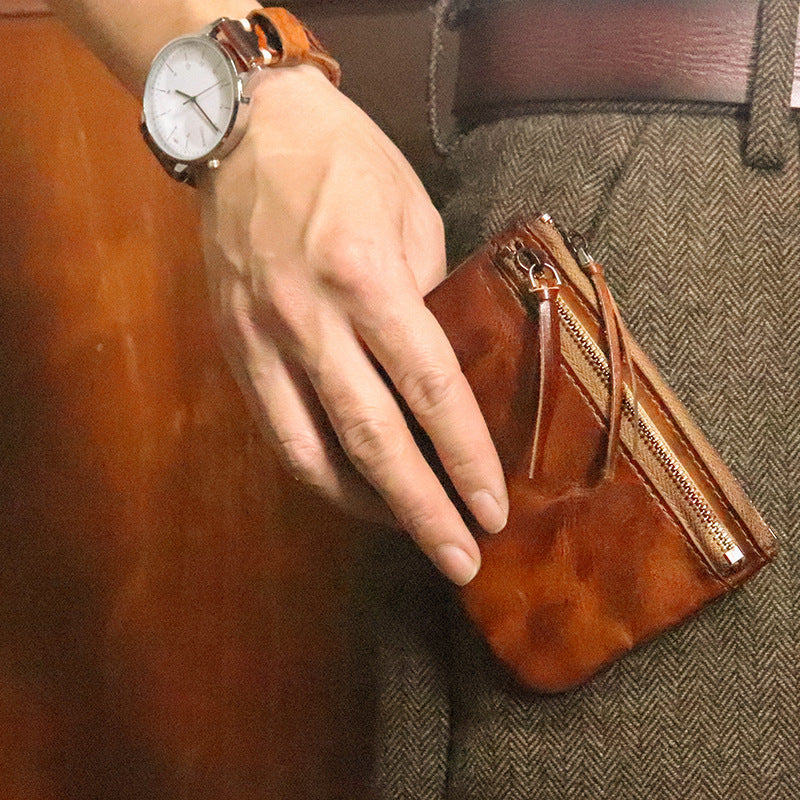 Women's First Layer Cowhide Retro Distressed Hand-rub Coin Purses