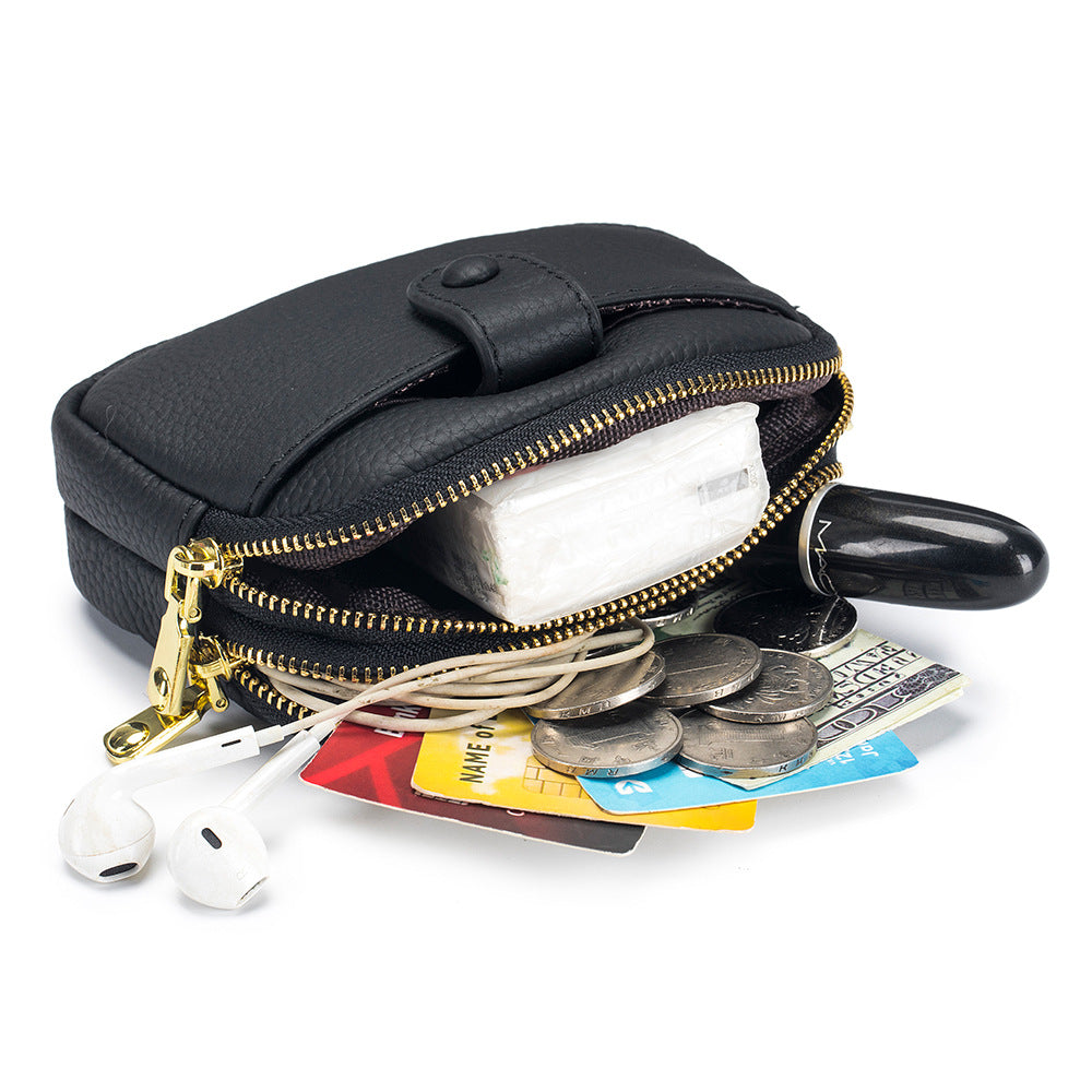 Women's Mini Leather Large Capacity Double Zipper Coin Purses